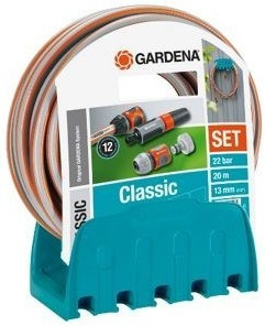 Wall Hose Bracket + 20m Classic 13mm (1/2″); 20m; burst pressure: 22 bar; warranty: 12 year; Set (1 x 18202/5305, 1 x 18215, 1 x 18213, 1 x 18300) with Wall Hose Bracket (241); display offer (content: 10 pieces)