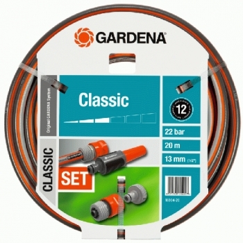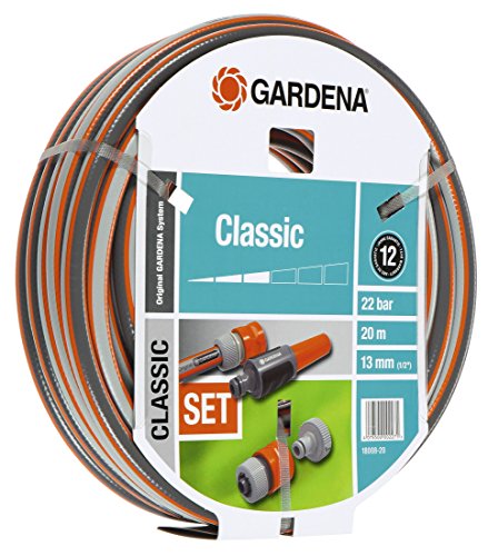 Classic Hose (1/2″), 20m w/f 13mm (1/2″); 20m; pressione di scoppio: 22 bar;garanzia: 12 anni; Set (1 x 18202/5305, 1 x 18215, 1 x 18213, 1 x 18300)